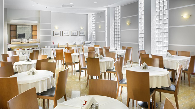 Du finder desuden en hyggelig restaurant (sæsonåben), som er beliggende på hotellets tag med udsigt over Akropolis.
